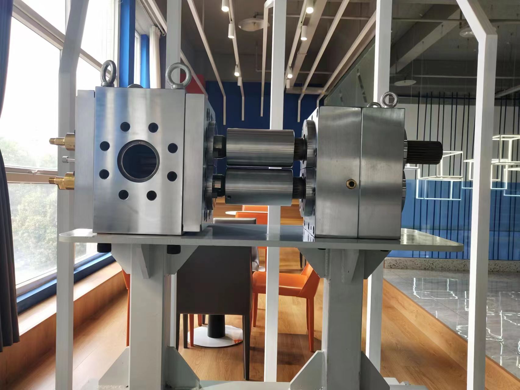 在延長設(shè)備整積壽命方面,熔體泵的引入有效減輕了螺筒內(nèi)的壓力重負(fù),螺桿與螺筒間的摩擦磨損大幅度降低,齒輪箱推力軸承的負(fù)擔(dān)亦隨之釋然,從而確保了擠出機在更長的生命周期內(nèi)保持高效穩(wěn)定運行。這一變革還巧妙解決了傳統(tǒng)擠出工藝中常見的排氣冒料難題,讓生產(chǎn)流程更加順暢無阻。